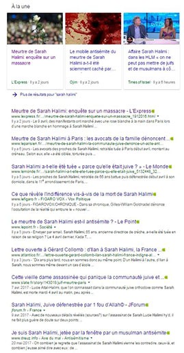 Il suffit juste de taper "Sarah Halimi" dans Google pour savoir de quand datent les infos publiées concernant son assassinat.
