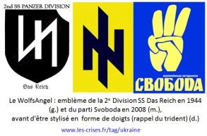 cette affiche qui fait partie de l'argumentaire de l'extrême gauche interpelle par sa partialité ...Fabius est ministre des affaires étrangères et n'intervient pas en tant que juif ,mais en tant que membre du gouvernement français ...pour ce qui est du leader de svoboda ,oui c'est un fasciste ,un antisémite ,un russophobe ,mais il n'empêche qu'en 2014 ce sont ses milices qui quadrillent l'Ukraine ,et qu'il faut parler avec les parties prenantes du conflit dans ce pays  ...