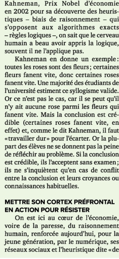 ....oublions nos penseurs humanistes, les Rousseaux, Montesqiueux voltaire ....Je ne peux m'y résoudre. Réveillons les esprits de nos enfants, comprendre et observer, analyser mesurer. Connaitre est insuffisant sans un bon vieux bon sens éduqué.