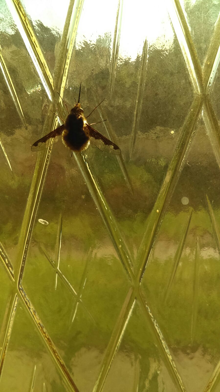 Bonjour, j'ai vu un insecte sur une fenêtre dans la maison, je n'en ai jamais vu un comme ça. J'ai cherché dans un livre et ça ressemble à un Grand bombyle dans la famille des mouches et moustiques. Il ressemble à une abeille ou bourdon avec une trompe comme les moustiques. Il a la taille d'une abeille. Je mets une photo pour vous rendre compte.
