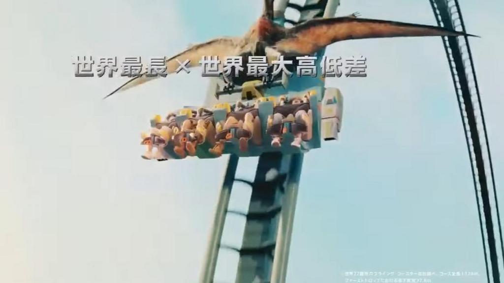 "Un Pteranodon hors de contrôle va vous saisir par-derrière et vous emmener haut dans le ciel", avait affirmé la description de l'attraction sur le site du grand huit de l'Universal Studios japonais.