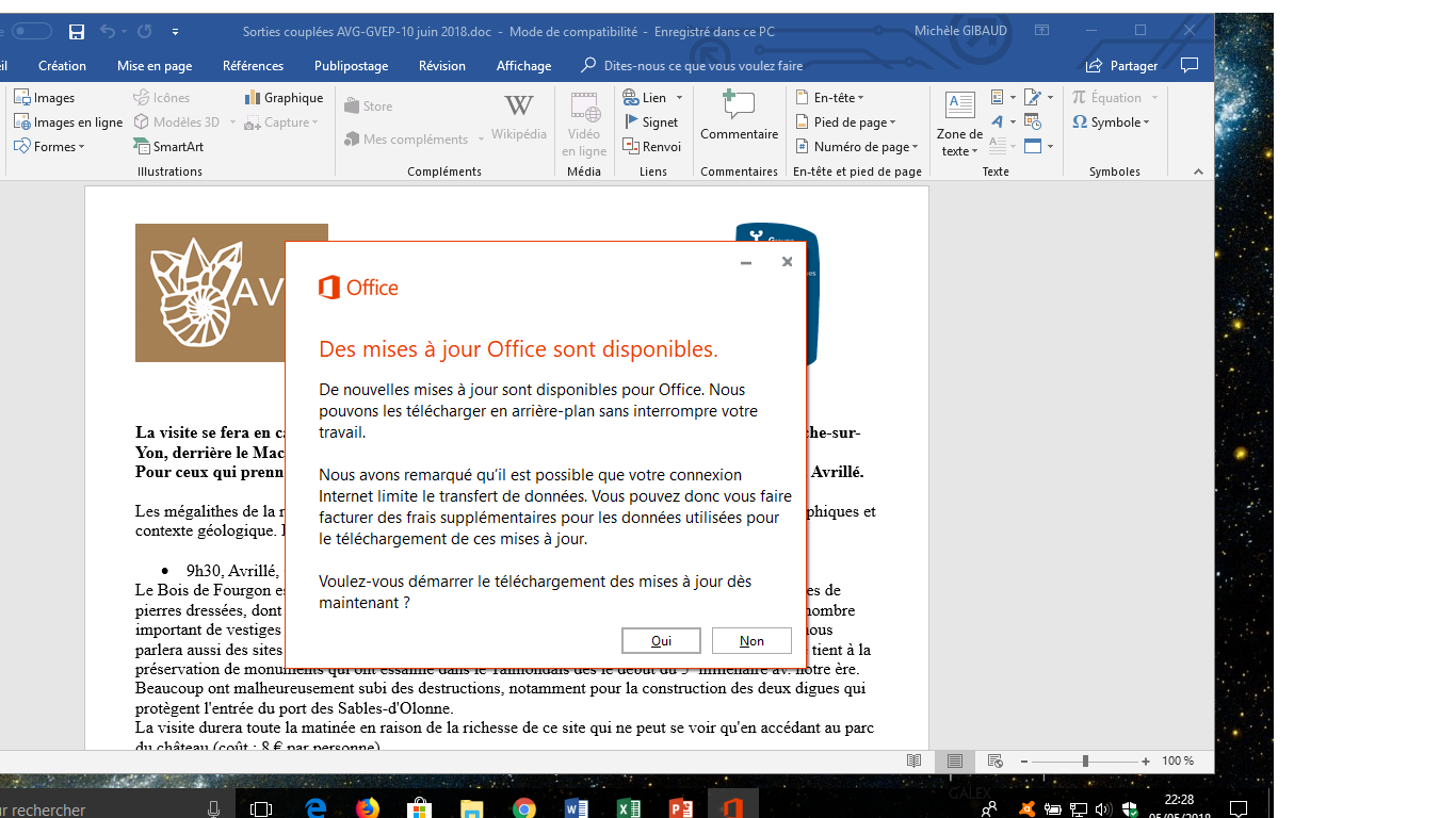 Merci pour votre aide je reviendrai vous dire si j'ai encore des messages  de mise à niveau sur Word !