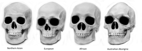 Du point de vue de la police scientifique sur une scène de crime quand il ne reste que le squelette de la victime , on observe les particularités osseuses du crane et de la face qui est spécifique à chaque groupes ethniques , et de là produire un portrait robot avec sa couleur de peau .