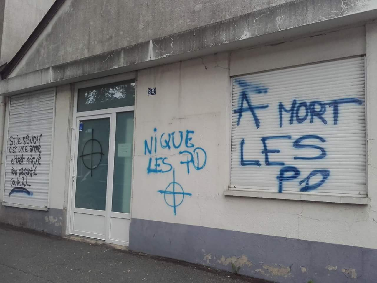 Sur la façade du bâtiment avenue de Chanzy qui abrite l'association de défense des mouvements gay, lesbien, bi et trans, on a inscrit des insultes ainsi qu'une croix celtique symbole de certains mouvements d'extrême droite.