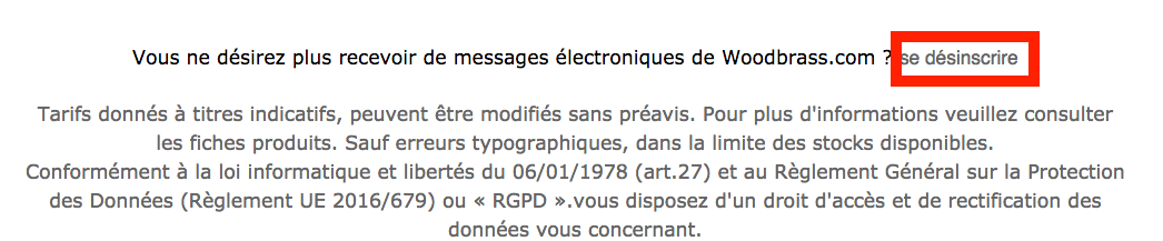 Dans la plupart des mails il y a un lien tout à la fin de celui-ci qui permet de se désinscrire de la réception dudit courriel, quelques exemples :