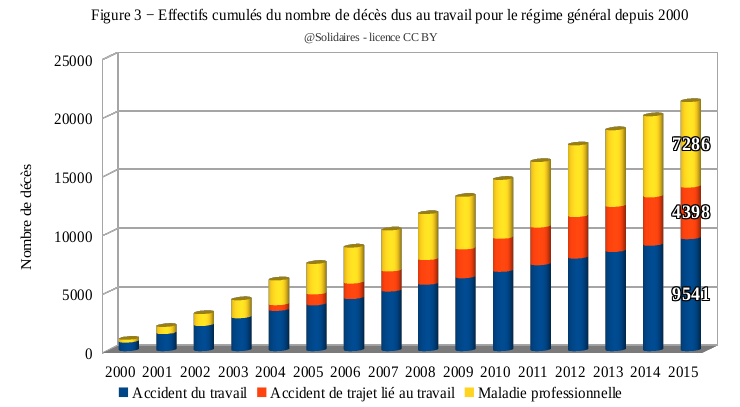 J'aimerai bien la source de ton graphique : ainsi il n'y aurait aucun décès à déplorer pour accident de trajet lié au travail avant 2004 ? Je trouve ça vraiment, vraiment suspect, même si je peux me tromper, l'augmentation est quasiment linéaire ce qui est ou bien très grave, ou bien une arnaque.