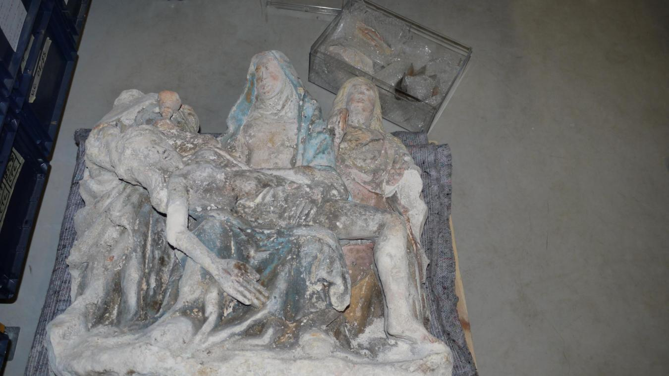 À Chepoix dans l’Oise, un paroissien a découvert une Pietà, une statue de la Vierge Marie portant le corps de Jésus. La statue était dissimulée sous l’autel et date de la fin du XVe siècle.