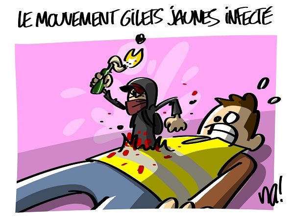 Je verrais bien le même dessin mais avec Macron à la place du gilet jaune.