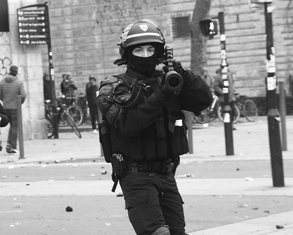 "La nouvelle technique bien connue des forces de l'ordre depuis le coup de frein sur le LBD : retourner un lanceur cougar (coudé, conçu pour ne pouvoir tirer que en l'air) afin d'effectuer des tirs tendus à hauteur de tête. Cette arme n'est utilisée plus que de cette manière, illégalement.