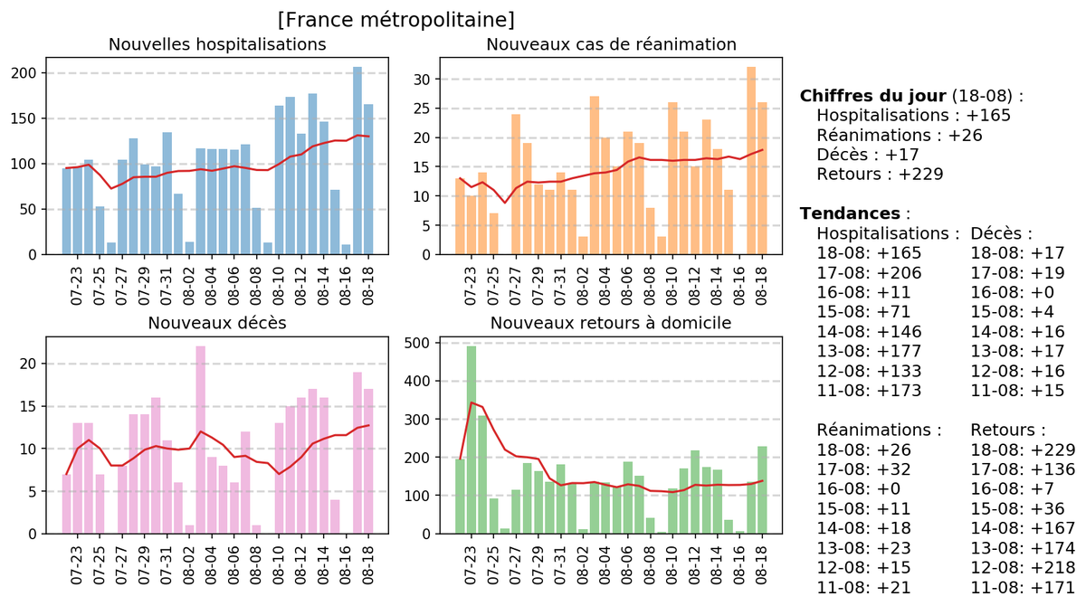 - 3 776 cas de coronavirus et 17 morts du COVID19 en 24h en France. C'est la plus forte hausse de cas depuis avril. (SPF)