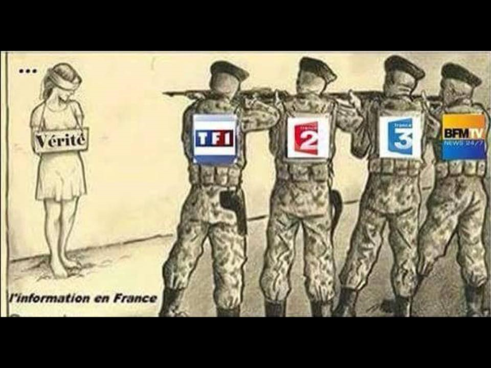 Je ne sais pas si j'approuve ou non cette image. LA vérité n'existe pas. Ces médias nous montrent leur vérité. Ce ne sont pas des mensonges (quoi qu'ils ne sont pas infaillibles), mais une certaine représentation du monde, qui est subjective, et très partielle. Je me souviens que Jean-Luc Mélenchon l'écrivait il y a un moment déjà dans "Qu'ils s'en aillent tous" :