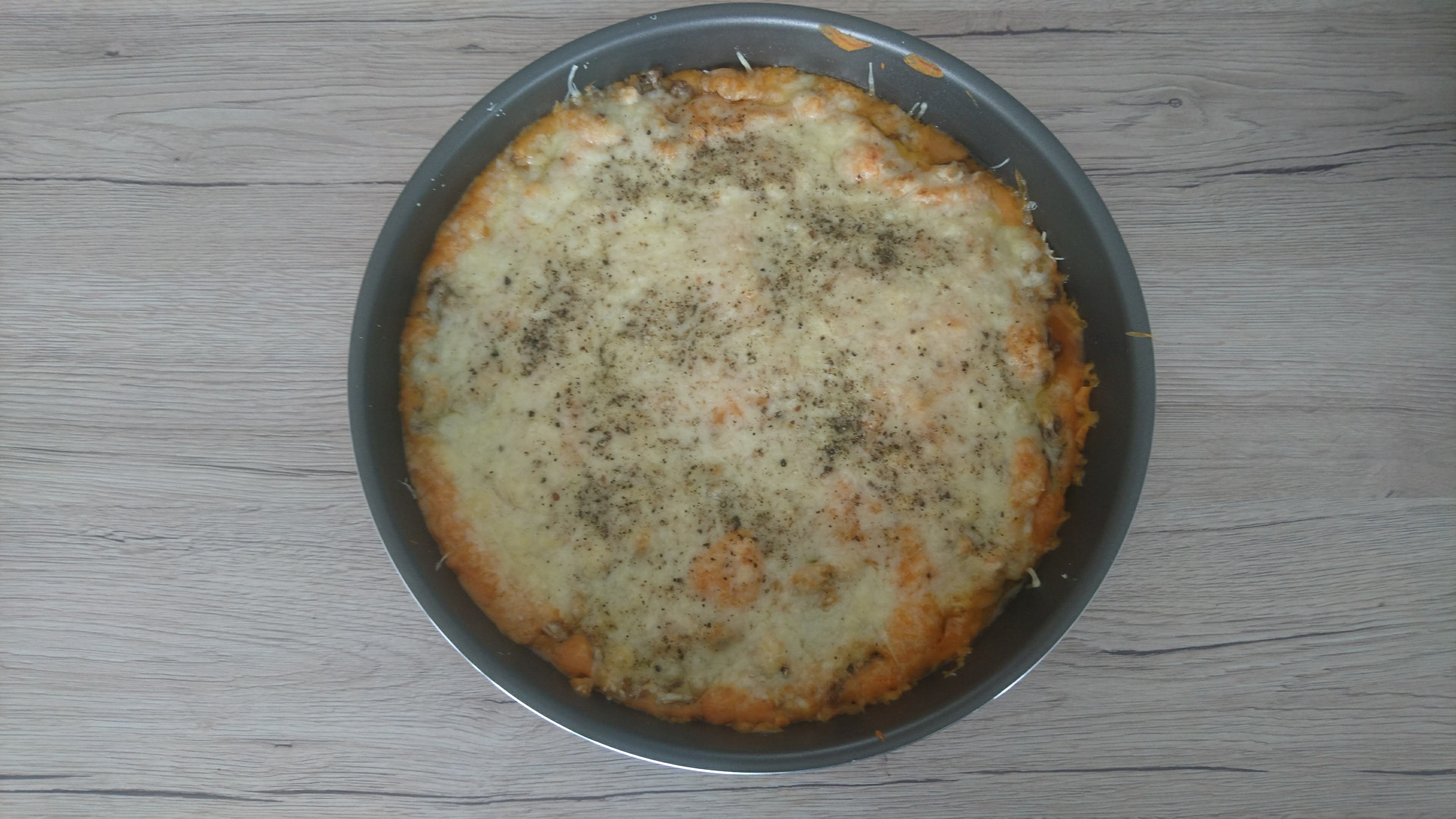 Puis dans un moule, mettre une couche de purée, la viande sans son jus (passée au chinois de préférence), une nouvelle couche de purée et de l'emmental avec à nouveau un peu de poivre. Au four à 180 degrés pendant 15 minutes.