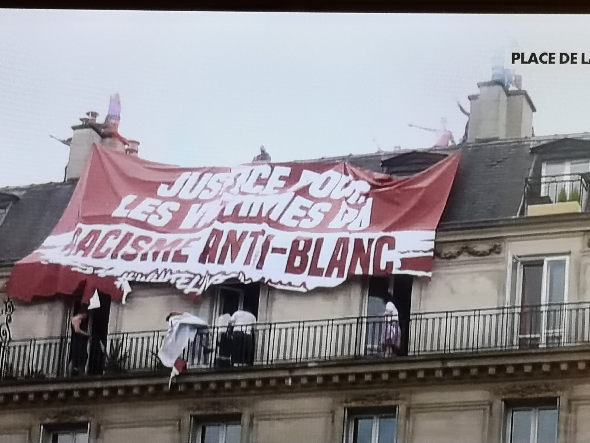 Pas de femmes traînées  comme des vulgaires gilets jaunes, ah, ils ont arrêté des types pour une banderole contre le racisme anti blanc..
