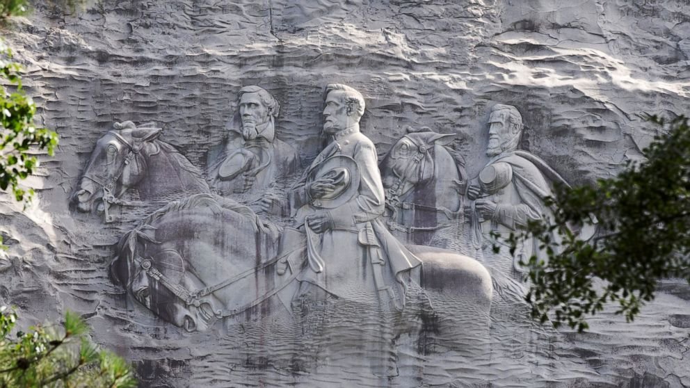 Un bien beau monument Stone Mountain; on dit que c'est l'équivalent sudiste du Mont Rushmore. On y voit, sur le plus grand bas relief sculpté au monde, le président confédéré Jefferson Davis et les généraux Robert E. Lee et Thomas "Stonewall" Jackson. Si les activistes blacks veulent le foutre par terre, je leur souhaite bon courage.:dev: Mais les Blancs américains deviennent tellement cons qu'ils le feront peut-être eux-mêmes.