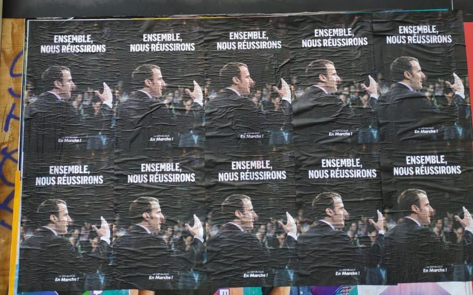 Paris, mercredi 30 septembre. Des dizaines d’affiches montrant Emmanuel Macron de dos, avec le slogan « Ensemble nous réussirons » ont été colées sur les murs de la capitale.