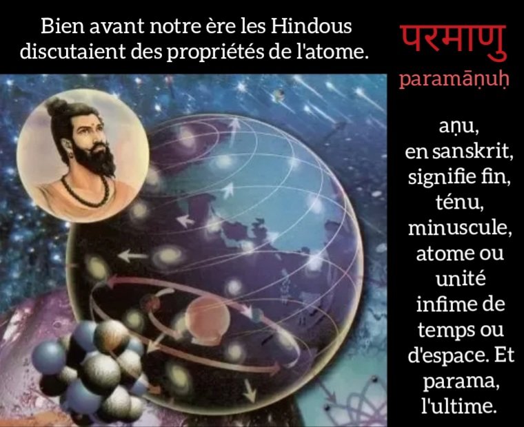 Car Étienne Klein sait bien (et s'il n'est pas encore au courant, c'est inadmissible) que d'autres civilisations se sont également penchées sur l'étude des premiers éléments matériels, il n'en souffle mot. Il suffit pourtant de se pencher moindrement sur la culture indienne pour se rendre compte que ces notions basiques de science physique étaient populaires. Il suffit d'aller sur Google et de taper atome et purana. On tombe sur ce verset du Bhagavatam en anglais et qui marque le début d'une discussion sur le sujet.