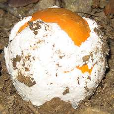 Ce pourrait être l'amanite des césars ou oronge.