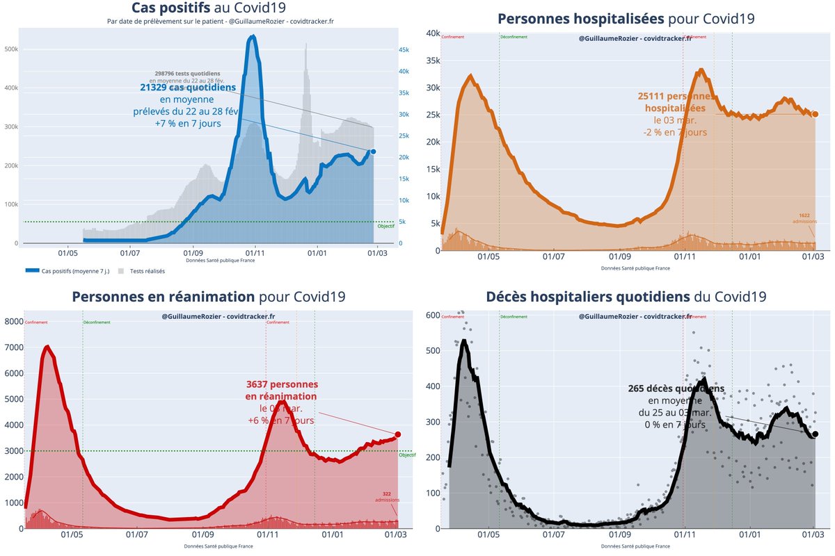 Chiffres #Covid19 : • 326 personnes décédées en milieu hosp. (03/03), en hausse sur 7 j. (+48) • 1622 admissions à l'hôpital (03/03), en baisse sur 7 j. (-14) • 3211 cas positifs (28/02), en baisse sur 7 j. (-172)