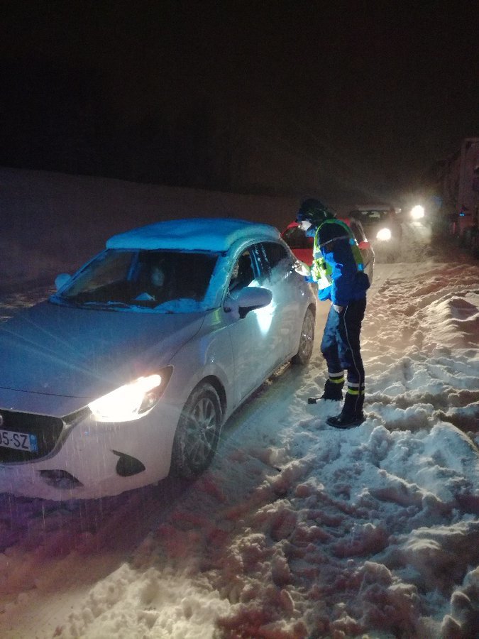 Cette nuit, sur l'autoroute A 40, la neige a bloqué environ 2 500 véhicules. Le maire de Bellegarde (Valserhône) a mis en place un dispositif d'urgence. Une trentaine de personnes ont été abritées dans un gymnase.