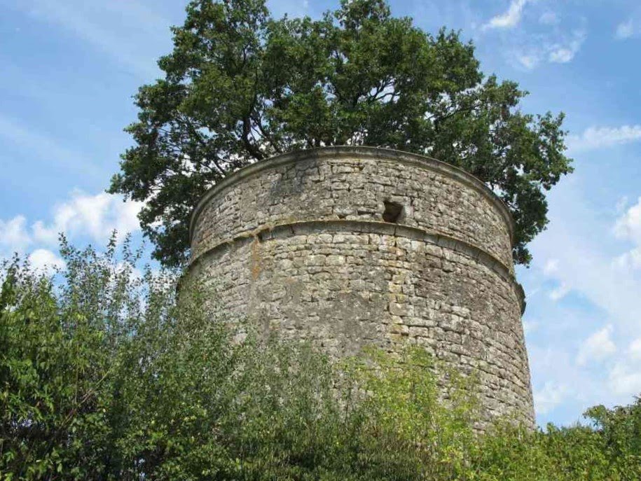 > A Béceleuf, le chêne du pigeonnier de Pouzay constitue avec l'édifice qui l'encercle un ensemble unique en France sur un relief dominant la vallée de l’Autize et la campagne environnante.
