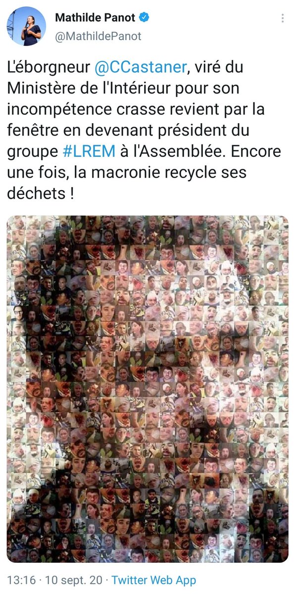 La députée du groupe LFI Mathilde Panot réclamant des sanctions contre un de ses collègues, est-ce bien celle qui traitait Christophe Castaner de - je cite - "éborgneur viré [...] pour son incompétence crasse" et l'assimilait à un dechet recyclé ?