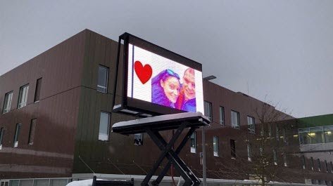 Il installe un écran géant sur le parking de la maternité pour sa femme.