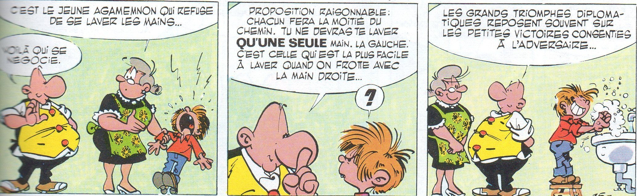 Exemple : A un enfant qui refuse de faire ses devoirs, on dit "tu n'as pas le droit de travailler après 19 heures", on inverse l'obligation...
