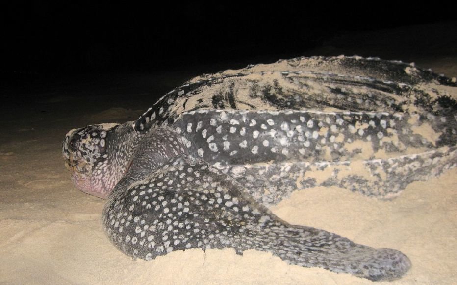 Illustration. Une tortue luth sur une plage du Bassin d'Arcachon, à Lège-Cap-Ferret (Gironde).
