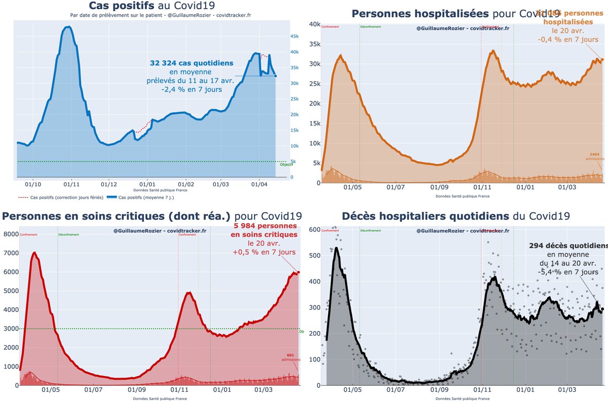Chiffres #Covid19 : • 375 personnes décédées en milieu hosp. (20/04), en hausse sur 7 j. (+51) • 2404 admissions à l'hôpital (20/04), en baisse sur 7 j. (-97) • 22299 cas positifs (17/04), en baisse sur 7 j. (-4448)