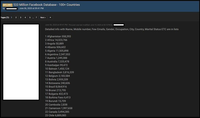 La moitié des 40 millions d’utilisateurs français de Facebook sont touchés: comme le révèle le chercheur en cybersécurité Alon Gal, les numéros de téléphone de 533 millions d’utilisateurs du réseau social - qui en compte près de trois milliards dans le monde - sont désormais librement accessibles sur le Web. La fuite de données, l’une des plus graves ayant touché la multinationale, avait été découverte en janvier dernier.