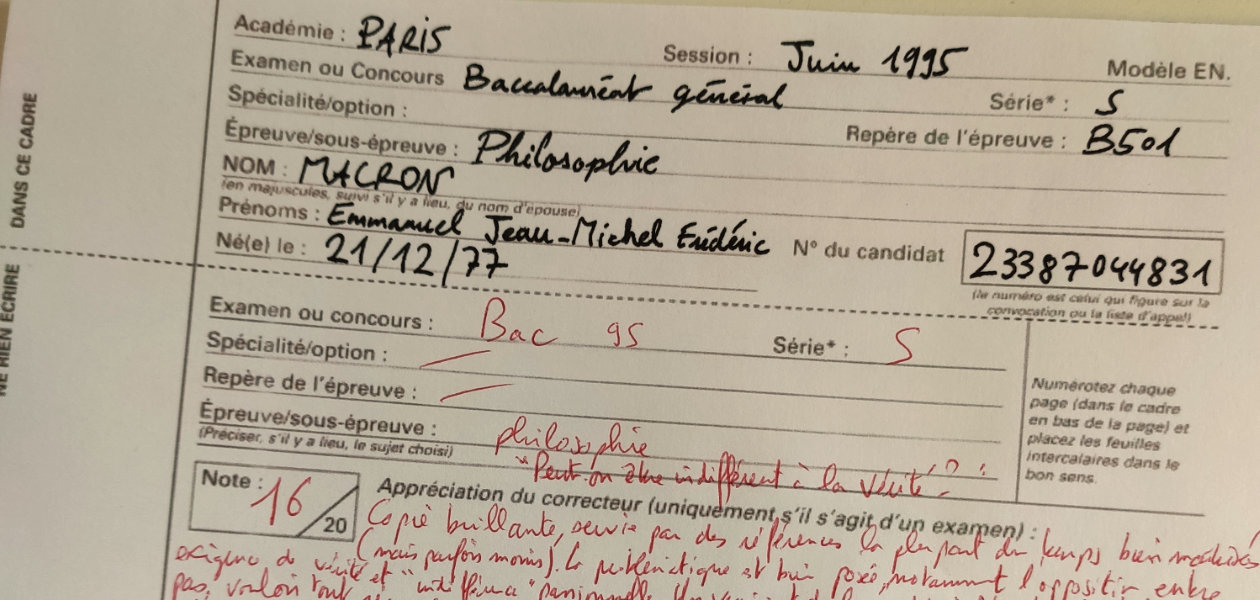 Nous avons retrouvé la copie du bac de philo d’Emmanuel Macron.