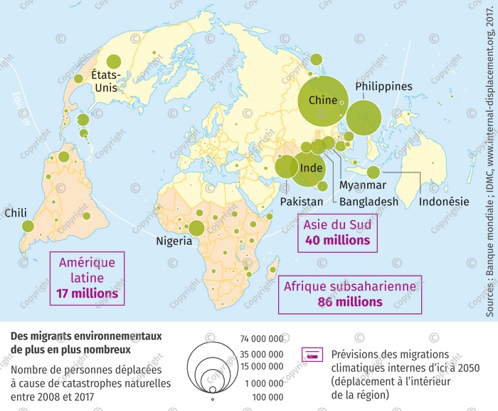 Le statut international de "déplacé climatique" se fait un attendre alors que dans les faits, les flux migratoires ont commencé depuis une dizaine d'années. Et les prévisions ne sont pas optimistes. Le terme de réfugié implique une persécution du fait de ses opinions, je ne sais pas s'il s'applique ici. Ceci dit ils n'ont pas le choix, ils sont bien obligés de partir et de se déplacer.