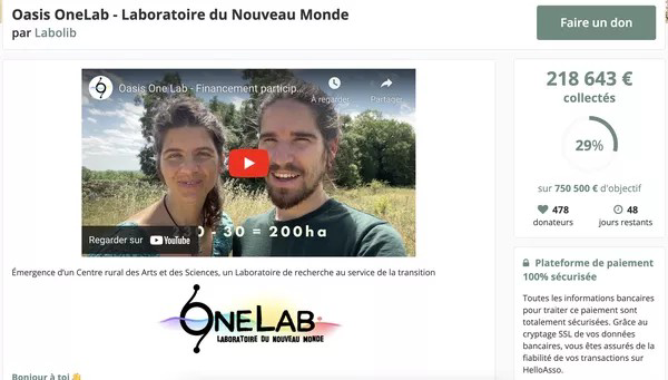 Sur un site internet spécialement créé pour l'occasion, deux figures de cette mouvance, Alice Pazalmar et son conjoint Sylvain, travaillent à présenter leur projet d'acquisition afin d'y installer "un Centre rural des Arts et des Sciences, un Laboratoire de recherche au service de la transition". À l'aide des photos du bien mises en ligne et d'une recherche sur internet, il est facile de localiser ce domaine isolé dans le sud de la petite commune de 124 habitants.