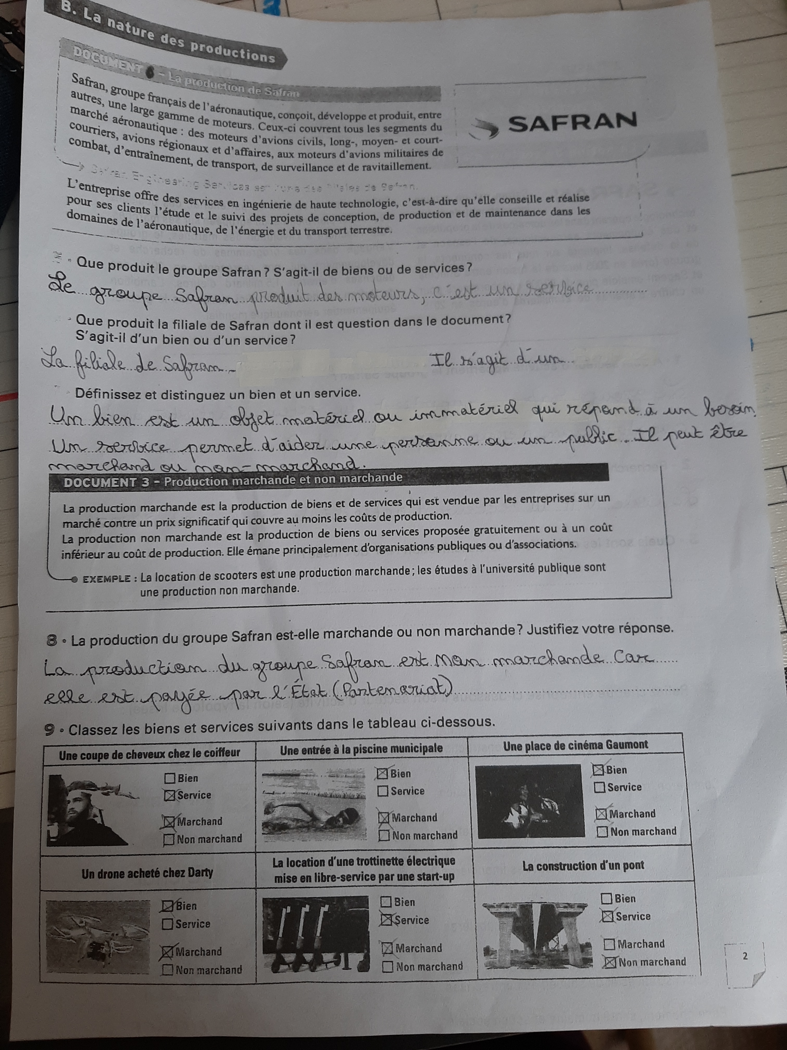 Dm économie gestion sur les secteurs d'activités 2nd pro