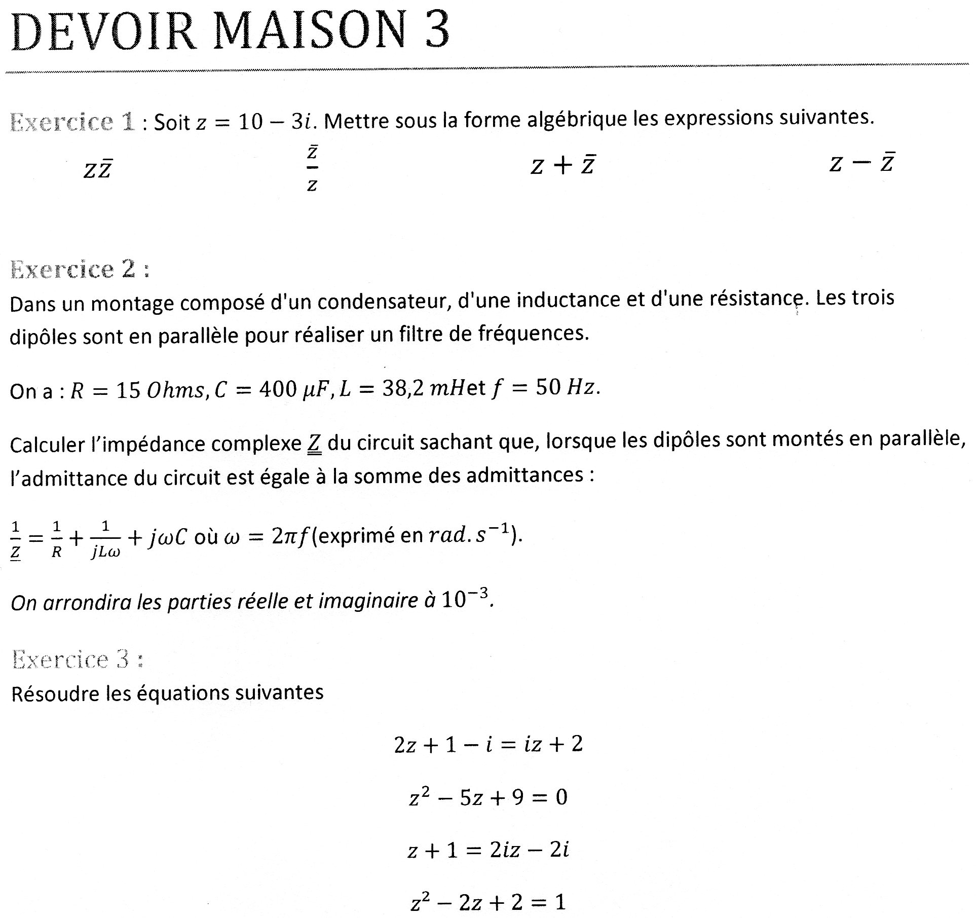 Remarque: en électricité on remplace le symbole de l'imaginaire par le symbole j pour éviter toute confusion avec les Intensités.