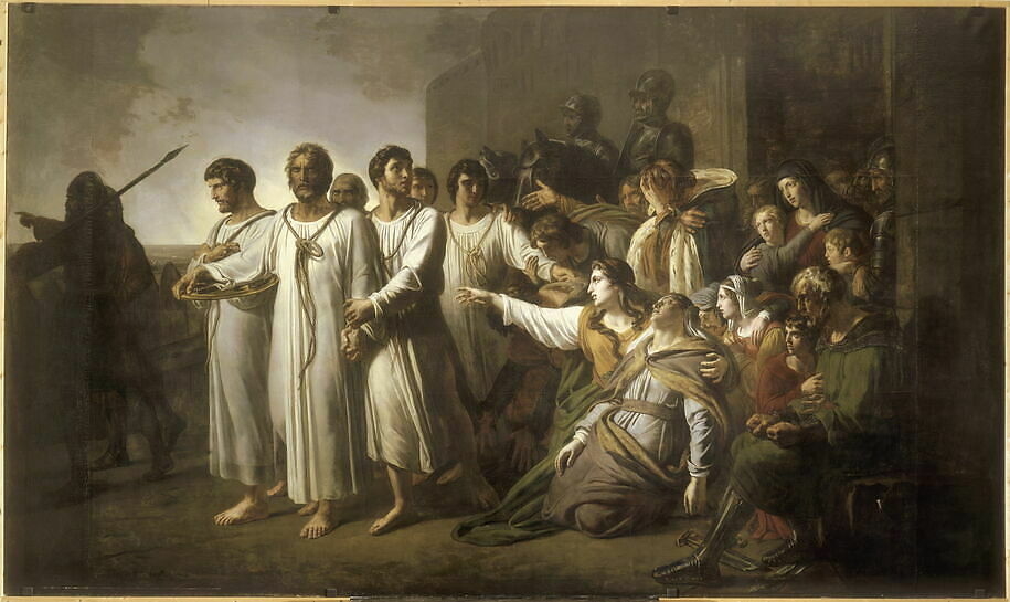 d'accord , mais en chemise et la corde au cou , comme les Bourgeois de Calais !