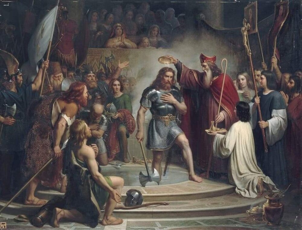 Vive Vercingétorix et .....Astérix, de vrais Français, Clovis est d'origine des Saliens de Tournai en Belgique actuelle, un fasciste qui as combattus les alamans et les burgondes  pour étendre SON royaume.