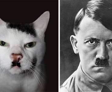 ah mince. je cherchais une autre image du chat hitler parce que c vrai que sa ressemblance meme au niveau du regard est troublante (à se demander sil s'est pas réincarné), mais j'aurai dû m'abstenir, jsuis tombée sur un chat qui s'est fait torturer cause à ca ;( le monde est fou.