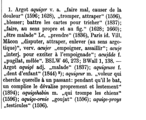 Ce n'est pas un mot d'argot, mais de français parlé, il existe très peu en écrit, il a deux sens  l'un qui est l'exagération,, l'autre qui est une blessure.