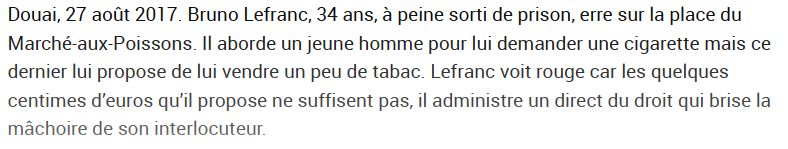 Incompréhensible. Hier dans un métro  à Lyon, je crois, un couple dit à un homme : 'il est interdit de fumer ici". Il les castagne et les envoie aux urgences...