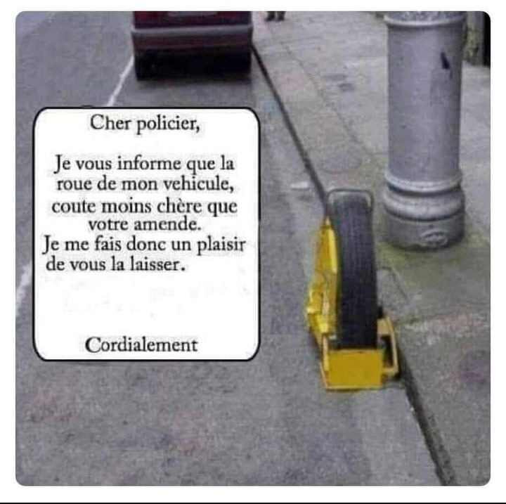 O.K. je n'ai pas fais le rapprochement , de laisser la roue, quand mon véhicule a été mis en fourrière a VAUJOURS , il était a LUNEL et moi dedans ;  Mafi mouchkila
