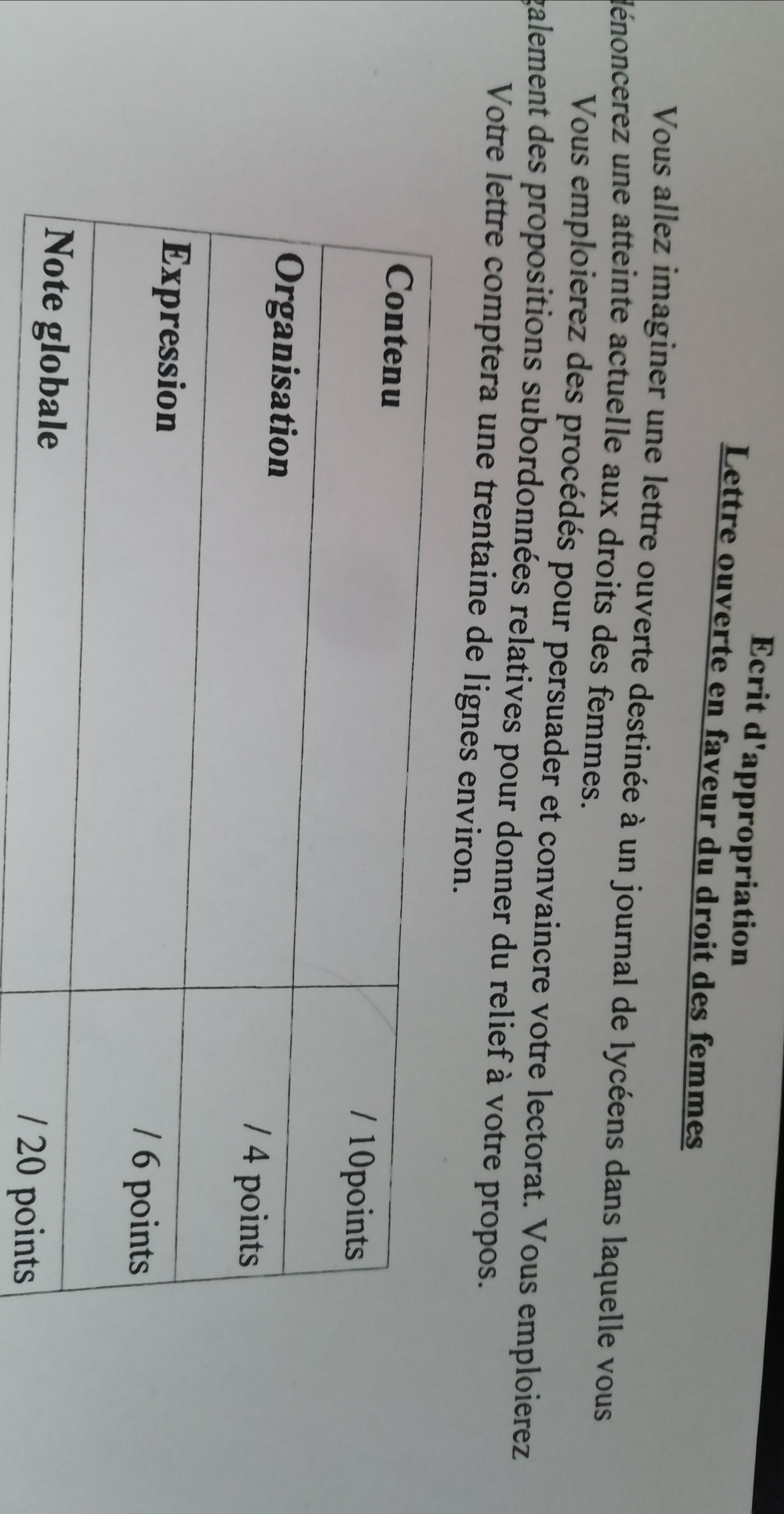 Vous allez imaginer une lettre ouverte destinée à un journal de lycéens dans laquelle vous dénoncerez une atteinte actuelle aux droits des femmes.
