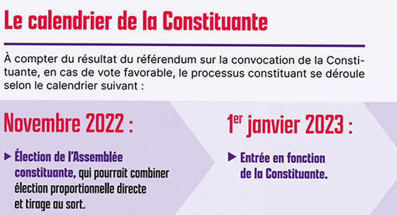 - un premier referendum pour le projet de loi sur l'instauration d'une assemblée constituante pour établir la constitution (ce projet expliquant le mode d'élection de cette constituante, son cadre, sa mission, etc ...).