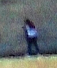 Je vois plutôt une femme,cheveux longs et sac à dos...Quant à dire ce qu'elle fait ?