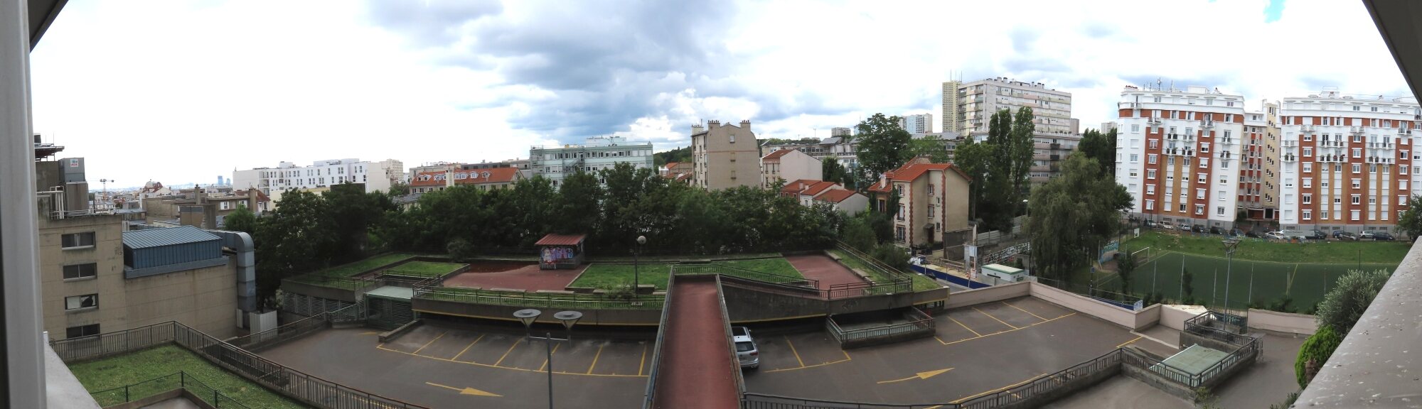 C'est ce que je vois de ma fenêtre de cuisine. Sur la gauche il y a Paris, en face c'est Vincennes et sur la droite on a Bagnolet. Les arbres en face sont peuplés d'oiseaux de plusieurs espèces. Il y a bien sûr des pigeons mais aussi des pies bavardes, des sansonnets, des merles. Quand tout ce beau monde se met à discuter, le bruit de la ville n'est pas si désagréable que ça. C'est à peu près les seuls bruits qu'on a. Sur la droite, il y a une rue sur laquelle doivent bien passer une dizaine de voitures par jour. A côté de ça, j'ai toutes les commodités de la ville. J'aime bien la ville.