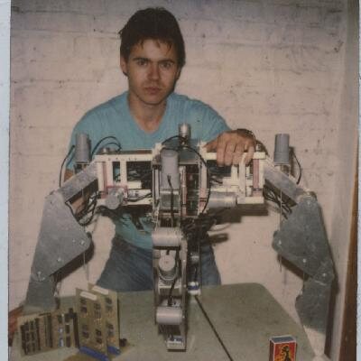 • Vers 18 ans je réalise une arraignée d’une dizaine de kilos, 4 pattes et 12 degrés de libertés, je réalise aussi toute l’électronique de controle