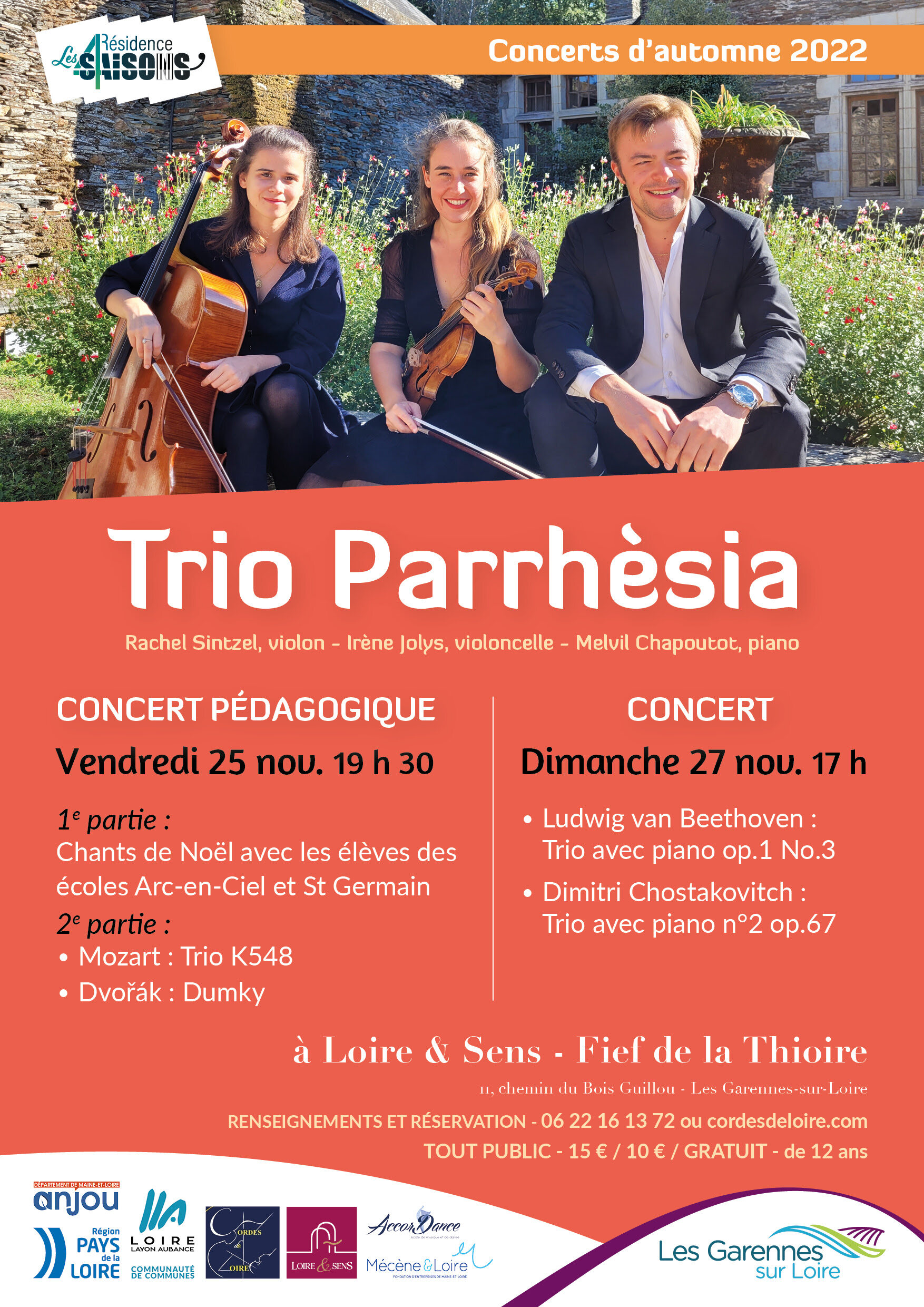 Trois merveilleux instrumentistes de ma région angevine se produisent, Irène JOLYS, Rachel SINTZEL, Melvil CHAPOUTOT.