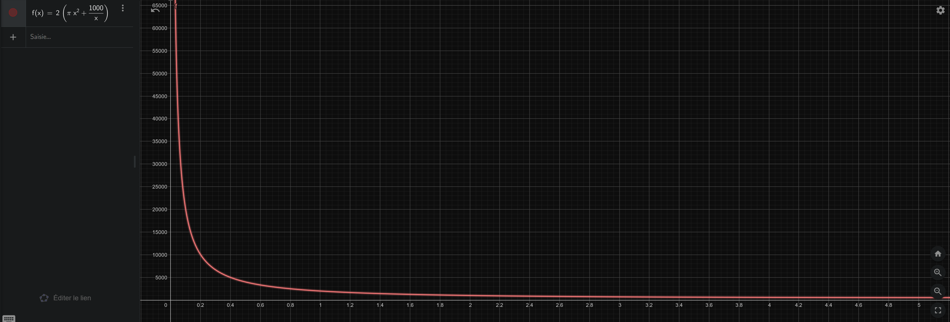 x doit être positif et différent de zéro ( sinon 1000/x n’a pas de sens). Domaine de définition : R + privé de zéro.