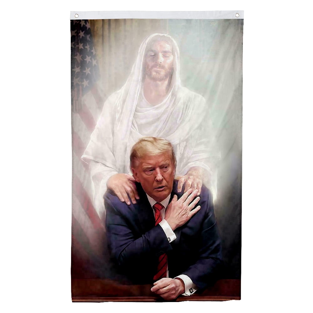 2but DONALD TRUMP PRAYING WITH JESUS flag Polyester 3x5ft Indoor Outdoor Banner