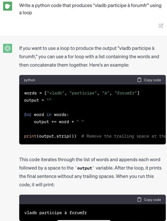 En revanche je crains beaucoup les dégâts que cela va faire dans la société : quand on aura à préparer un texte, le recours à cette invention va tarir l'effort cérébral, en particulier chez les jeunes. Quand on voit l'orthographe négligée par les SMS, l'IA va fair pire, puisque c'est le fonctionnement cérébral qui va être mis en veilleuse. je plains les enseignants.